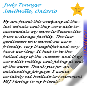 MSJ Moving West wishes to extend its sincerest thanks to all of our customers who send us kind words in email and phone calls. Moving your precious items is a lot of hard work and we take great pride moving you, your family or business, wherever you have to. If you wish to read some of our references, they are available on our references page. If you would like to comment on our service, your welcome to through social media, email or a phone call. Similarly, if you have any suggestions for service improvements, we would also like to know what they are.