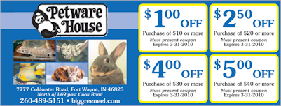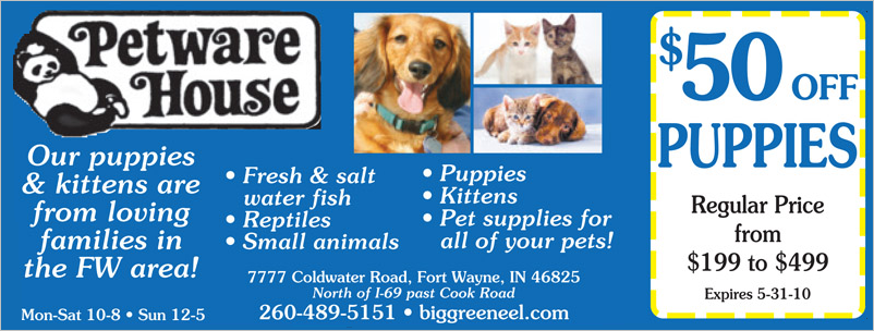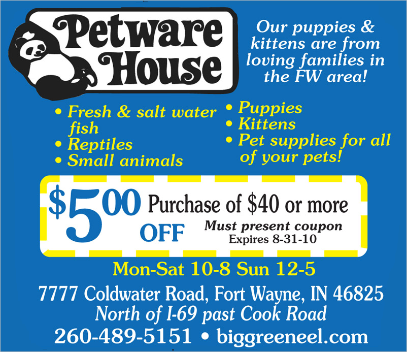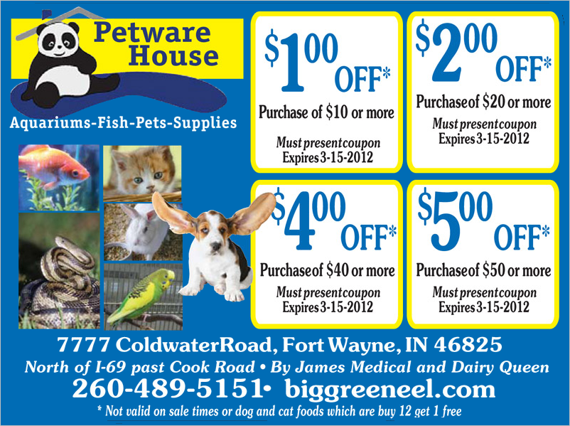 Petware House is conveniently located at 7477 Lima Road, Fort Wayne, Indiana, which is just moments north of West Cook Road and a few minutes drive from the I-69. While heading north on Lima Road, you will find us on the left hand side of Lima Road, next to DAVCO Auto. We have ample parking for our visitors, parking for seniors, handicap and expectant mom’s. Additional accessibility is available for handicap and for the delivery of large items into and out of our store location. Come into our new showroom for the largest selection of healthy pets, pet food, pet accessories and let our friendly, knowledgeable staff help you find that perfect pet and solutions that work best for you.